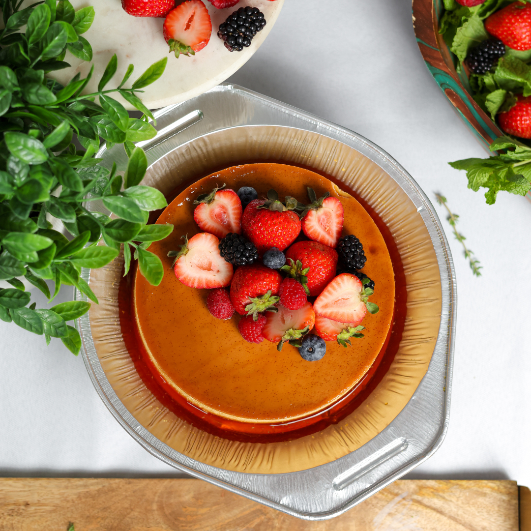 El clásico flan dominicano en su versión más cremosa y delicada. Preparado con ingredientes naturales, textura suave y el caramelo justo para un postre.